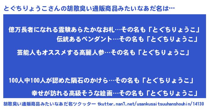| 恥ずかしいあだ名 | 『トグチリョウコデラックス』 |