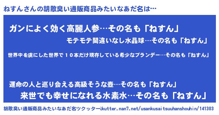 | 意味不明あだ名 | 『住所不定無職ねすん(84歳)』『自称ねすん』 |
