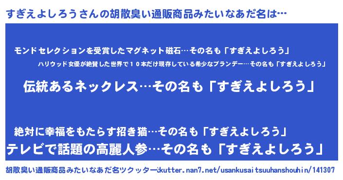 | 意味不明あだ名 | 『とにかく怪しいすぎえよしろう』 |