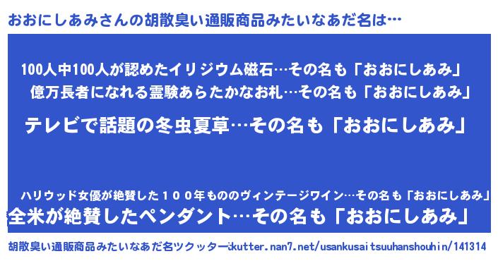 | 意味不明あだ名 | 『自称おおにしあみ』 |