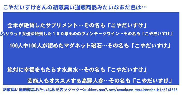 | ヘコむあだ名 | 『こやお』『こやだいすけ(小並感)』 |
