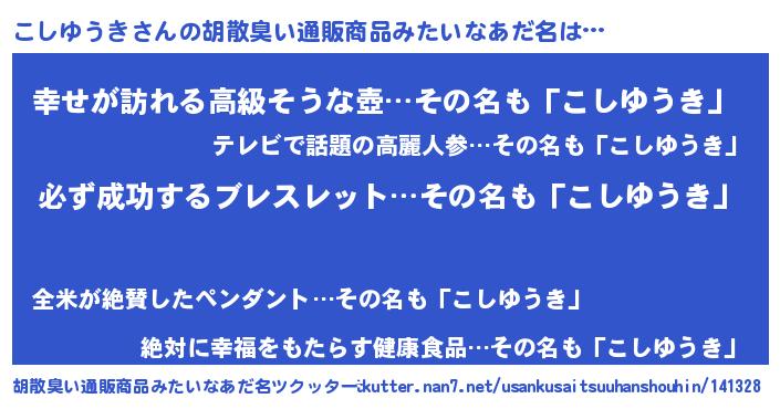 | ファンタジー風あだ名 | 『コシフェル』『エターナルコシユウキー』 |