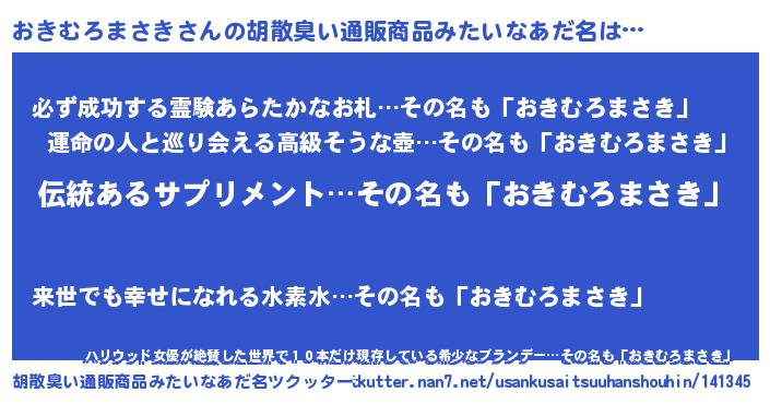 | 意味不明あだ名 | 『とにかく怪しいおきむろまさき』 |