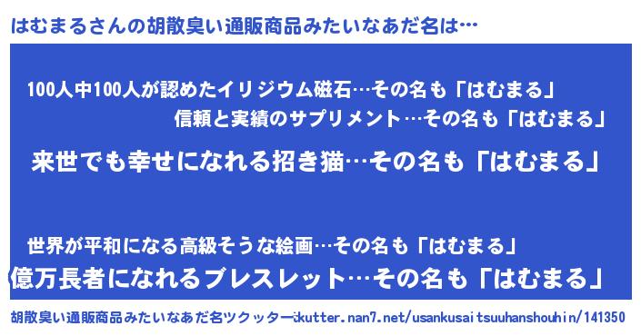 | ヘコむあだ名 | 『はむまる(笑)』『はむふぇ~』 |