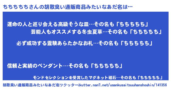 | ヒーロー風カッコイイあだ名 | 『スーパーチチチチチ』『黄金騎士チチ』 |