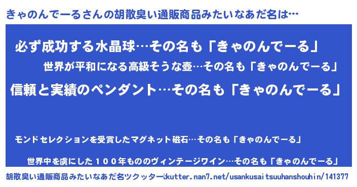 | 意味不明あだ名 | 『とにかく怪しいきゃのんでーる』 |