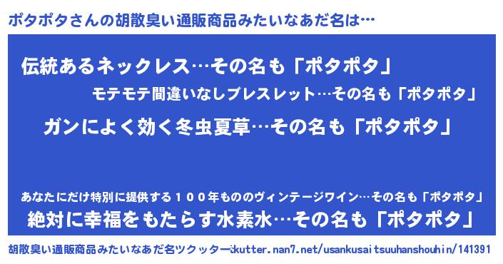 | 意味不明あだ名 | 『自称ポタポタ』『永久保存ポタポタ』 |