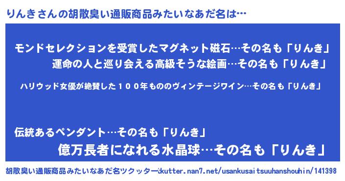 | 意味不明あだ名 | 『住所不定無職りんき(3歳)』 |