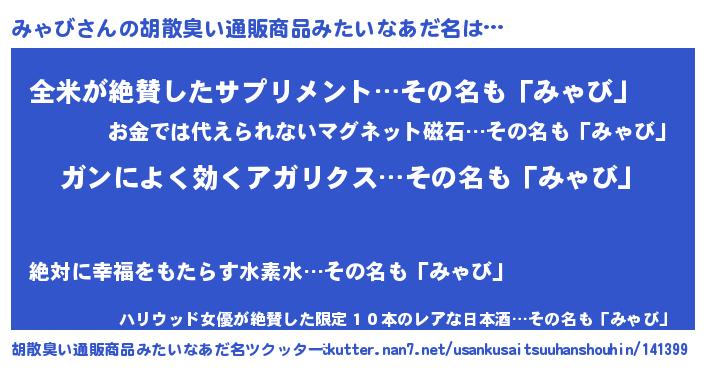 | ヘコむあだ名 | 『みゃっ子』『みゃび(遠い目)』 |