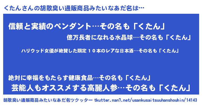| 男性向けラノベタイトル風あだ名 | 『魔弾の王とくたん』『クタンスレイヤー』 |
