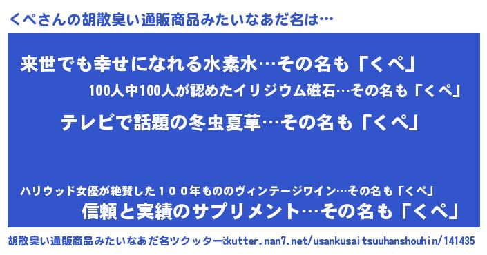 | 意味不明あだ名 | 『自称くぺ』『たけのこ科くぺ属』 |