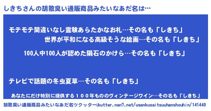 | 意味不明あだ名 | 『眠気覚ましガムしきち味』『自称しきち』 |