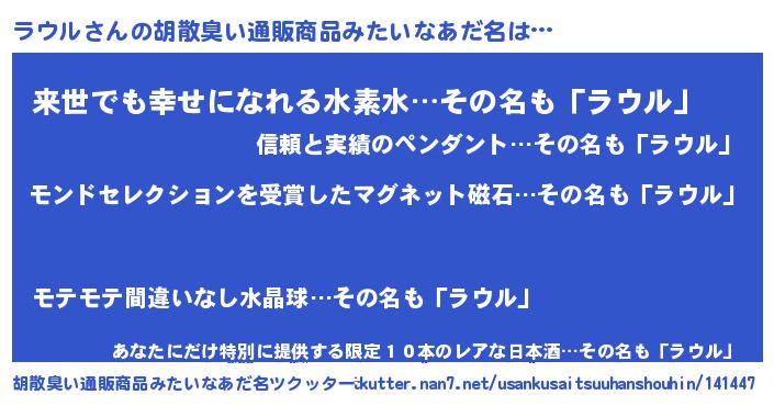 | ヒーロー風カッコイイあだ名 | 『慈愛の使者ラウル』『ネオラウル』 |