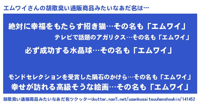 | ヘコむあだ名 | 『エムふぇ~』『エムワイ(小並感)』 |