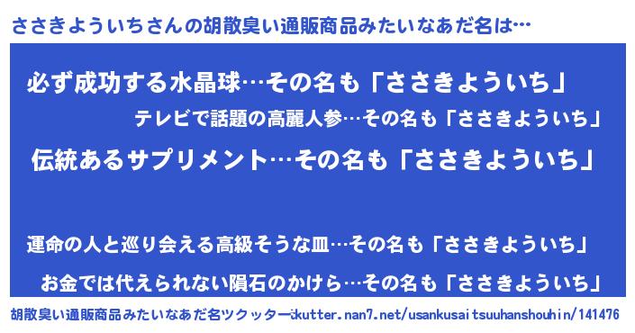 | 男性向けラノベタイトル風あだ名 | 『ささきよういちの嫁は女の子じゃないと思った?』 |