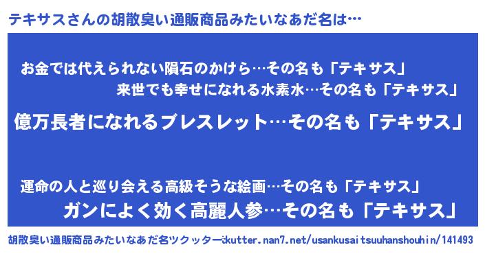 | ヘコむあだ名 | 『テキふぇ~』『テキサス(遠い目)』 |