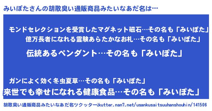 | ヘコむあだ名 | 『みいっぺ』『みいぽた(小並感)』 |