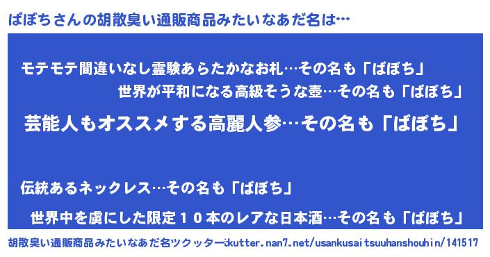 | 意味不明あだ名 | 『ニラ科ばぼち属』『自称ばぼち』 |