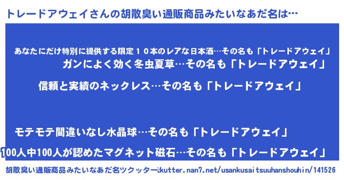 | 欧米人風あだ名 | 『ウサイントレードアウェイ』 |
