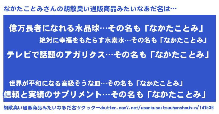 | 意味不明あだ名 | 『自称なかたことみ』 |
