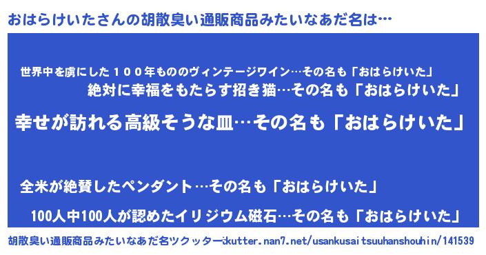 | 欧米人風あだ名 | 『おはらけいたクリステル』 |