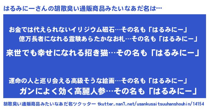 | 男性向けラノベタイトル風あだ名 | 『はるみにーという概念が存在しない退屈な世界 』 |