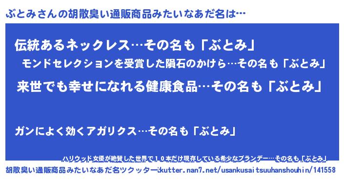 | ヘコむあだ名 | 『ぶとみ(苦笑)』『ぶとっ子』 |