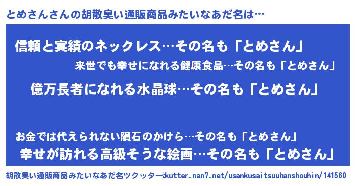 | 意味不明あだ名 | 『ペロリンとめさん』『永久保存とめさん』 |