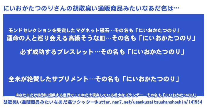 | 男性向けラノベタイトル風あだ名 | 『はたらくにいおかたつのりさま!』 |