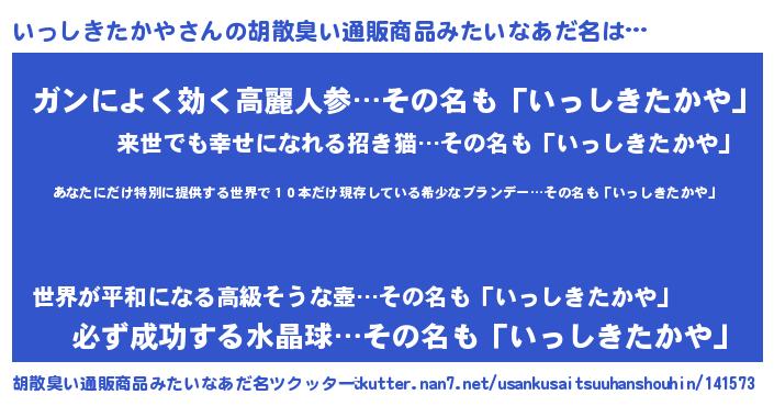 | ヘコむあだ名 | 『いっっふぃ~』『いっしきたかや(震え声)』 |