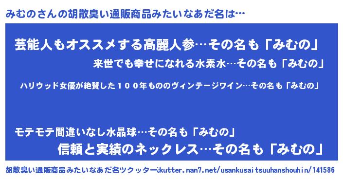 | 意味不明あだ名 | 『住所不定無職みむの(9歳)』『自称みむの』 |