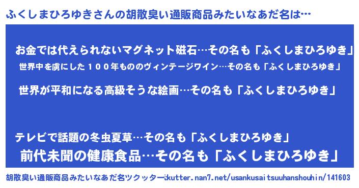 | 意味不明あだ名 | 『ふくしまひろゆきフォーエバー』 |