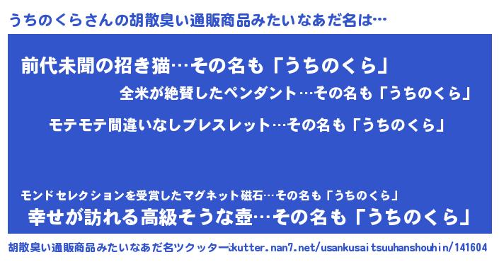 | ヒーロー風カッコイイあだ名 | 『スーパーウチノクラ』『ネオウチノクラ』 |