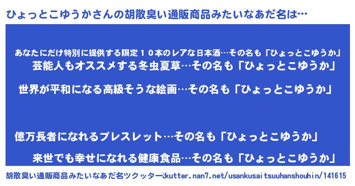 | ファンタジー風あだ名 | 『エターナルヒョットコユウカー』 |