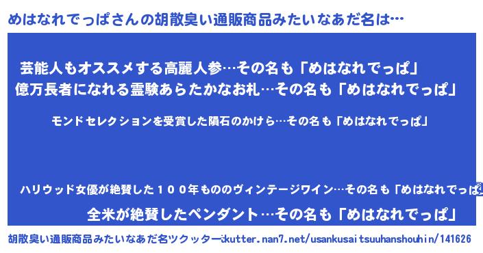 | ヘコむあだ名 | 『めはっちょ』『めはにー』『牛乳』 |