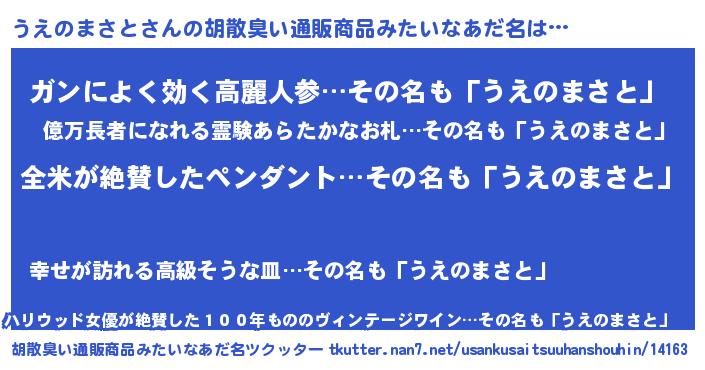 | 意味不明あだ名 | 『とにかく怪しいうえのまさと』 |