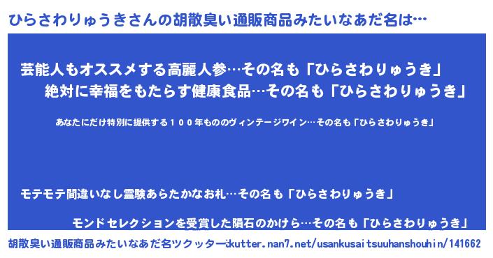 | 意味不明あだ名 | 『住所不定無職ひらさわりゅうき(5歳)』 |
