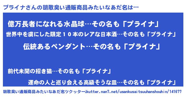 | 意味不明あだ名 | 『とにかく怪しいプライナ』 |
