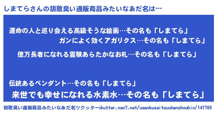 | 意味不明あだ名 | 『ニラ科しまてら属』『ペロリンしまてら』 |