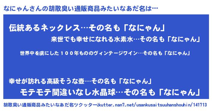 意味不明あだ名 | 『住所不定無職なにゃん(7歳)』 |