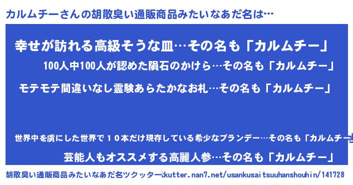 | 意味不明あだ名 | 『ペロリンカルムチー』『自称カルムチー』 |