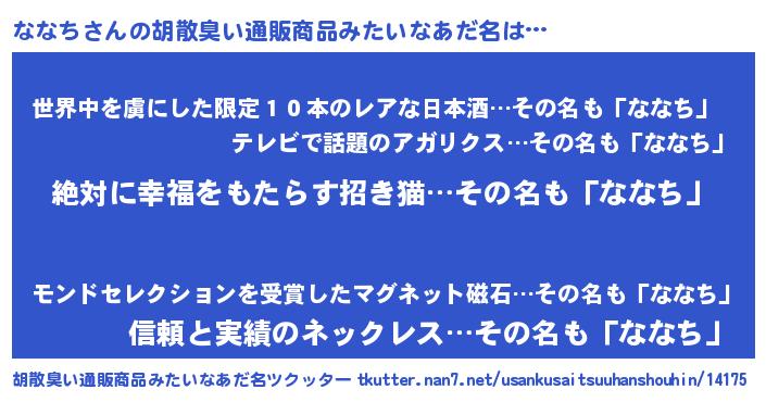 | ヘコむあだ名 | 『ななち(笑)』『ななっ子』 |