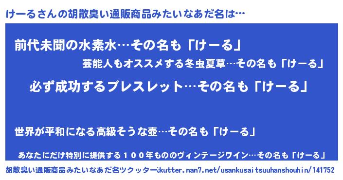 | 男性向けラノベタイトル風あだ名 | 『けーるの憂鬱』『ケールスレイヤー』 |