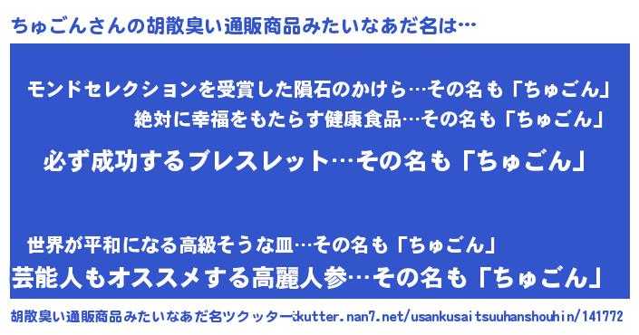 | ヘコむあだ名 | 『ちゅにー』『ちゅごん(苦笑)』 |