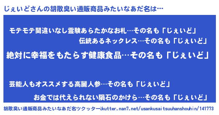 | ヘコむあだ名 | 『じぇいど(笑)』『じぇっふぃ~』 |