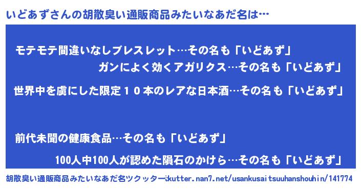 | ヘコむあだ名 | 『いどふぇ~』『いどあず(遠い目)』 |