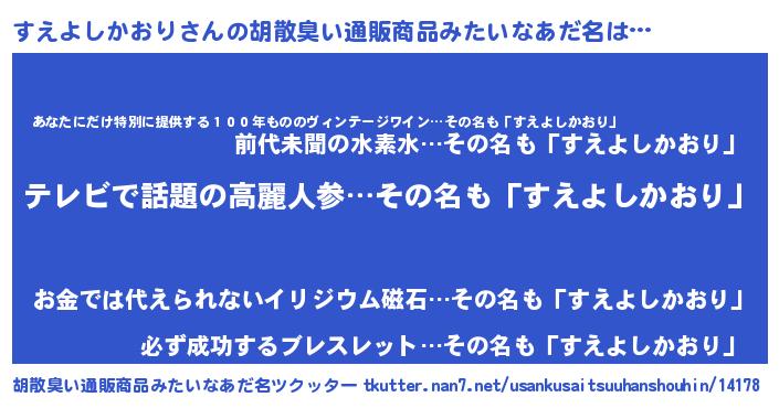 | 意味不明あだ名 | 『自称すえよしかおり』 |