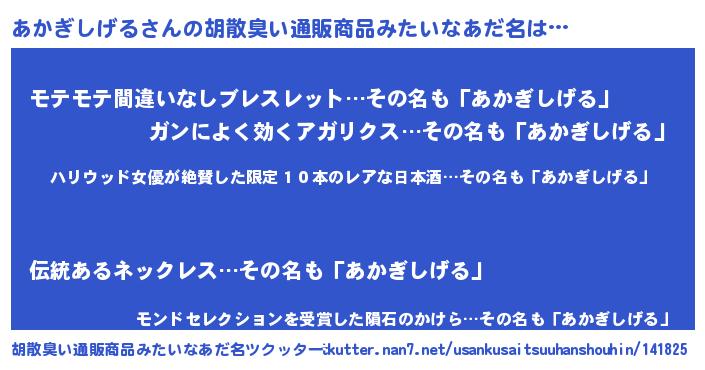 | 意味不明あだ名 | 『住所不定無職あかぎしげる(43歳)』 |