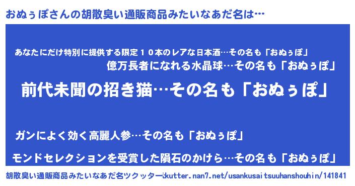 | ヘコむあだ名 | 『おぬぅぽ(小並感)』『おぬにゅー』 |