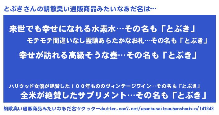 | 意味不明あだ名 | 『とぶきフォーエバー』『永久保存とぶき』 |